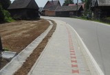 - wykonanie nowego ciągu pieszego na dł. ok 104 mb z kostki bet. ograniczonej krawężnikiem i obrzeżem,