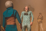 Po krótkiej przerwie rozpoczął się spektakl. Widzowie zasiedli wokół sceny i czynnie w nim uczestniczyli. Dźwięk, światła, stroje, choreografia i sama gra aktorów robiła niesamowite wrażenie. Wszyscy byli zachwyceni. Pan Kleks często schodził ze sceny i krążył pomiędzy widzami włączając tym samym wszystkich w klimaty swojej Akademii.