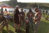 W pierwszy dzień zawodów pogoda była najsłabszym zawodnikiem, silny wiatr, duże "bałwany " na wodzie sprawiły, że większość ekip ulokowała się w zatoczkach, warunki były trudne, więc i zgłoszonych ryb było niewiele.